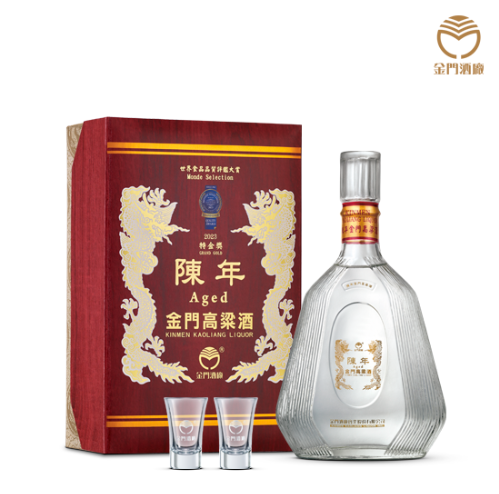 外盒用華美紅色與國人熟悉的燙金雙龍做為整體主視覺,一同並列2016年首次參加最具權威的世界級烈酒競賽,榮獲「世界食品品質評鑑大賞特金獎」的極致榮耀,證明金門 高粱酒受專業評審的肯定,傳承堅持的優良酒質,成就不變的經典與精神。